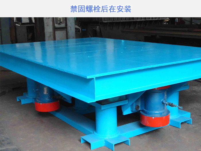 1、 振动台安装前,应先打好基础,打基础时上平面要按水平找并按底梁螺栓孔埋好固定螺栓,然后安装,安装时固定螺栓必须拧紧。