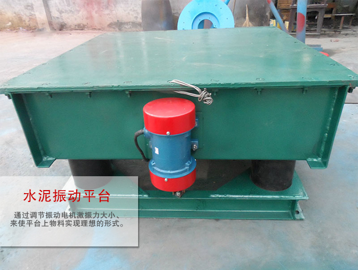 水泥振动平台于生产流程中用于把颗粒物料从散装到块状、型状等形式的转变。水泥振动平台的台面与机座采用橡胶连接,工作时噪音低,减振效果好。具有较好的工艺性。水泥振动平台广泛地使用在吨包、吨袋,包装线等行业。