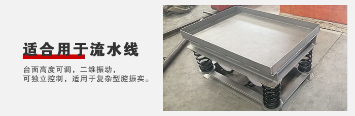 在使用过程中,可以通过调节振动电机激振力大小、来使平台上物料实现理想的形式。该机主要用于物料的振实际时,通过振动电机带动机体振动使物料充分紧实。可以与辊道输送机组成流水生产线。