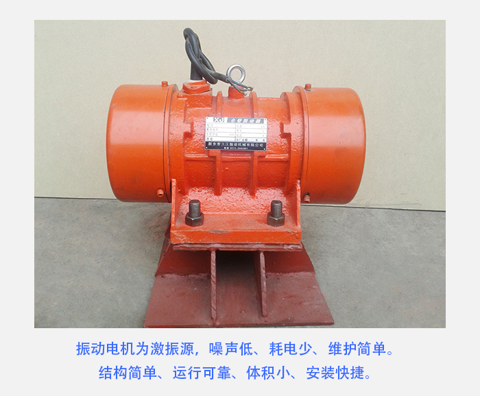 1、振动电机为激振源,噪声低、耗电少、维护简单。